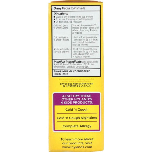 Hyland'S Cough Syrup 4 Kids With 100% Natural Honey, 4 Oz (Case of 2)