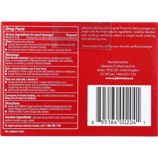 Jakemans Lozenge Throat And Chest Cherry Menthol, 24 Pc (Case of 4)