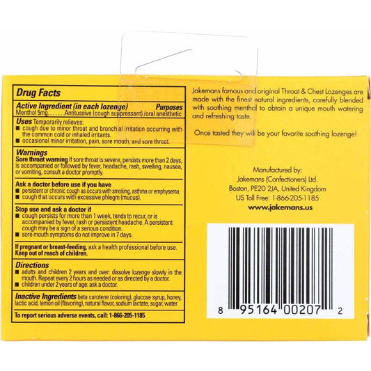 Jakemans Lozenge Throat And Chest Honey And Lemon, 30 Pc (Case of 5)