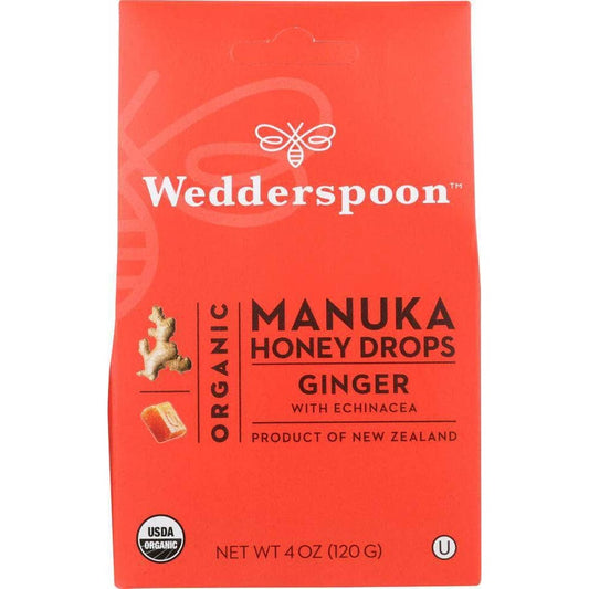 Wedderspoon Organic Manuka Honey Drops Ginger, 4 Oz (Case of 2)