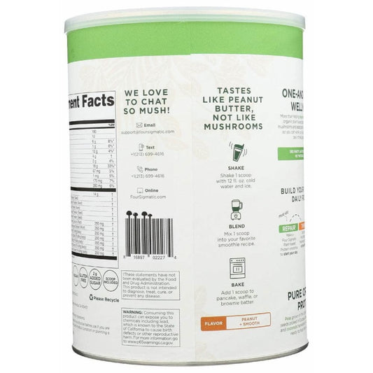 Four Sigmatic Plant-Based Protein Powder, Peanut Butter, 21.6 Oz