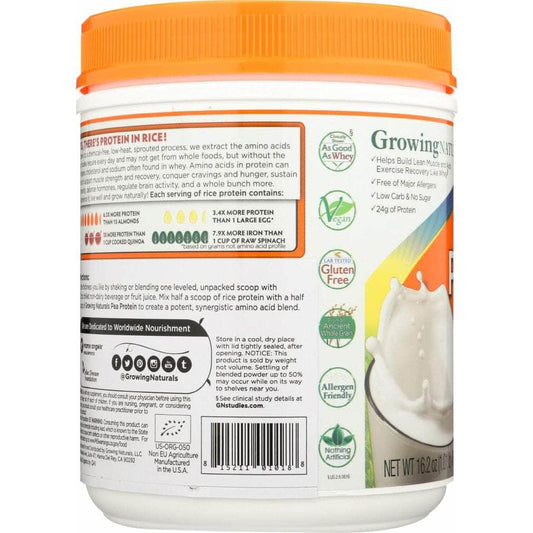 Growing Naturals Organic Raw Rice Protein Original, 16.2 Oz
