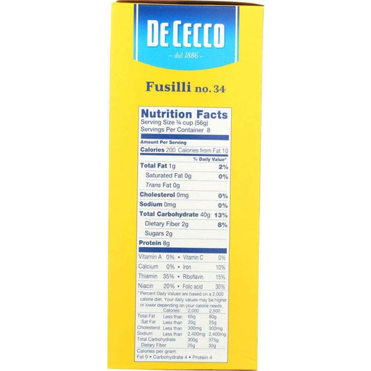 De Cecco Fusilli Pasta No. 34 Pasta, 16 Oz (Case of 4)