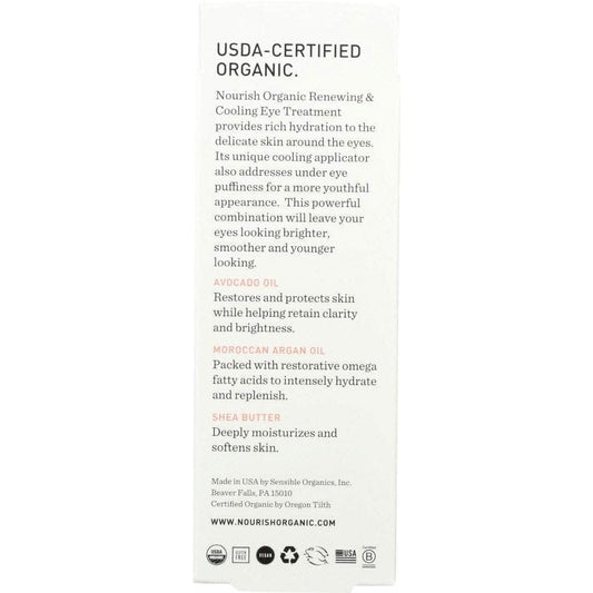 Nourish Organic Renewing + Cooling Eye Treatment, Avocado + Argan Oil, 0.5 Oz
