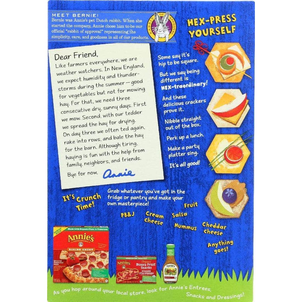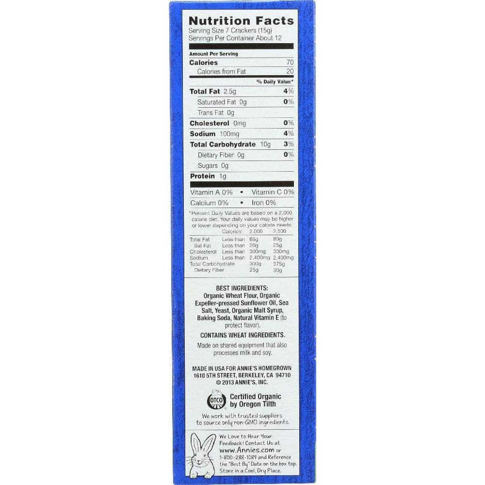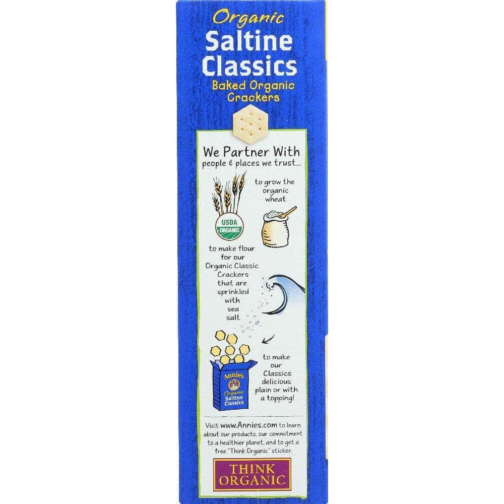 Classic crackers made Annie’s way — and certified organic to boot! Flaky, crisp, and light: our Saltine Classics are simply great. Just the right ingredients give these saltines a classic style. Match them up with tomato soup, peanut butter, cheese, or nothing at all.