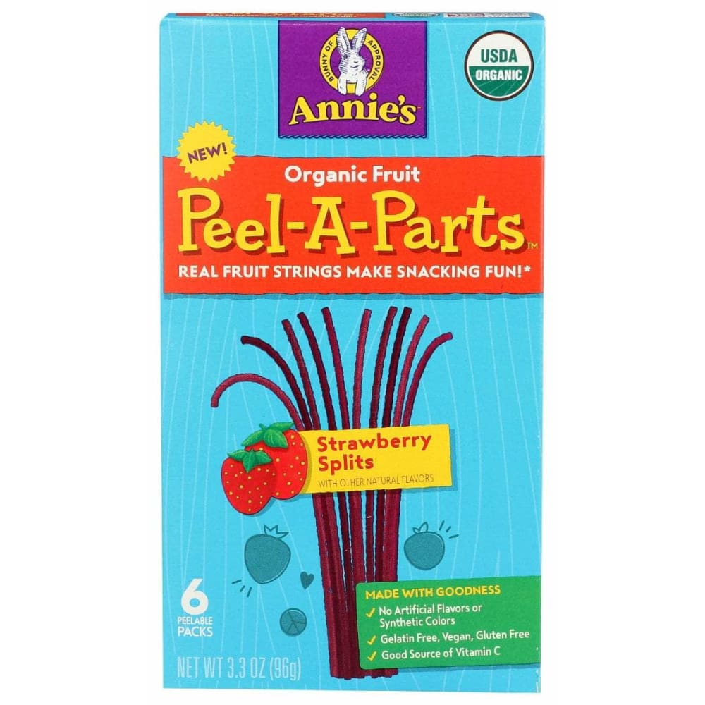 Swirl it, twirl it, bend it and whirl it! Annie’s Organic Strawberry Splits Peel A-Parts are a delicious snack that are as fun to play with as they are to eat. No artificial flavors, synthetic colors or high-fructose corn syrup here – just deliciously juicy bites of vegan and gluten free goodness. That’s right, this playful take on snack time is the real, certified organic deal. Peel them apart and watch the fruity fun unwind. Go ahead, play with your food!