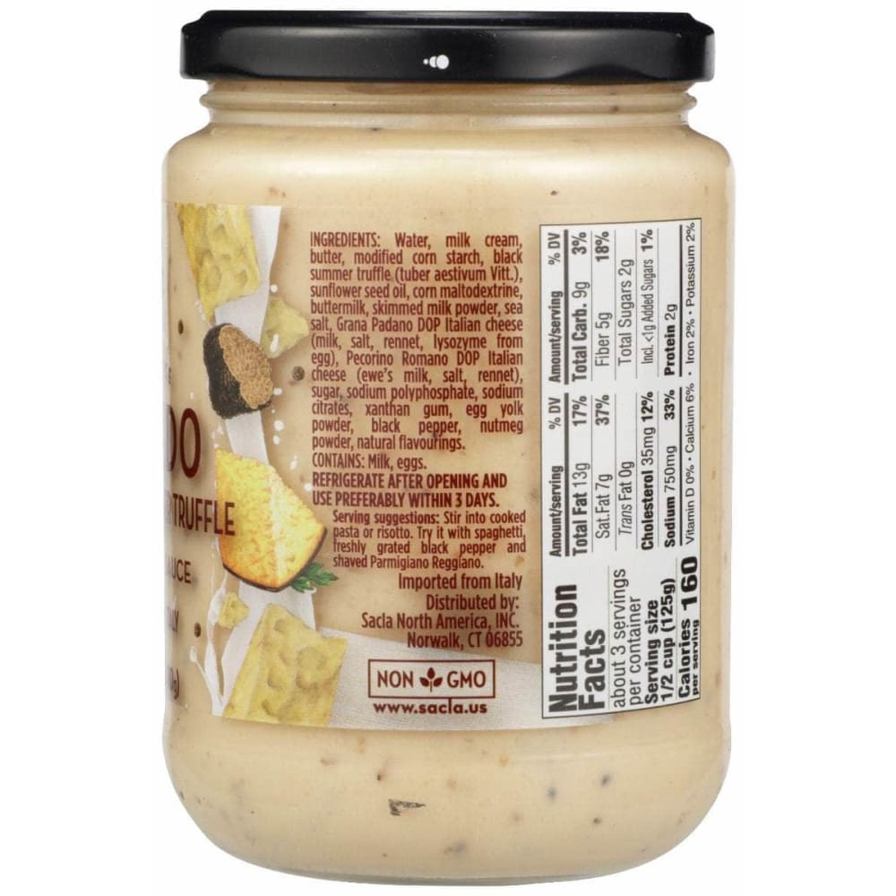Alfredo with Black Truffle takes inspiration from the most famous Piedmont ingredient. Saclà brings a genuine intensity and richness to our sauce. Saclà Alfredo sauces are the only Alfredo-type sauces made in Italy using the best Italian DOP cheese.