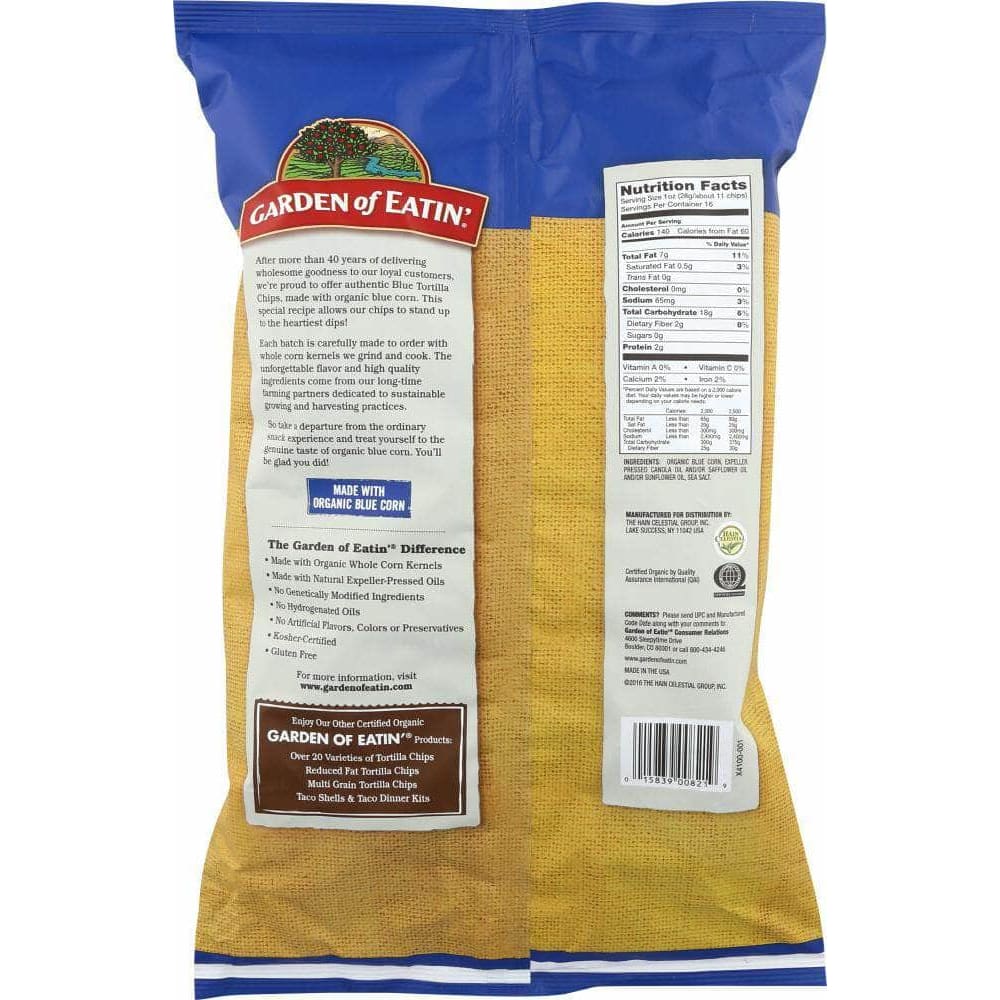 The true-blue color and hearty texture of our Garden of Eatin’ Blue Corn Chips make them as pleasing to your palette as they are to your eyes. Made from organic blue corn and wholesome garden ingredients, these chips pack enough flavor and crunch to liven up any party – bringing out the snack connoisseur in all of us.