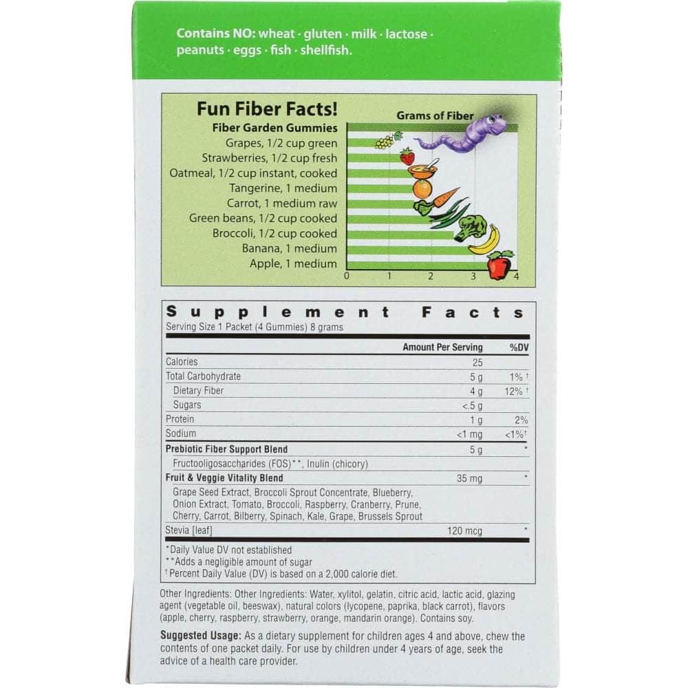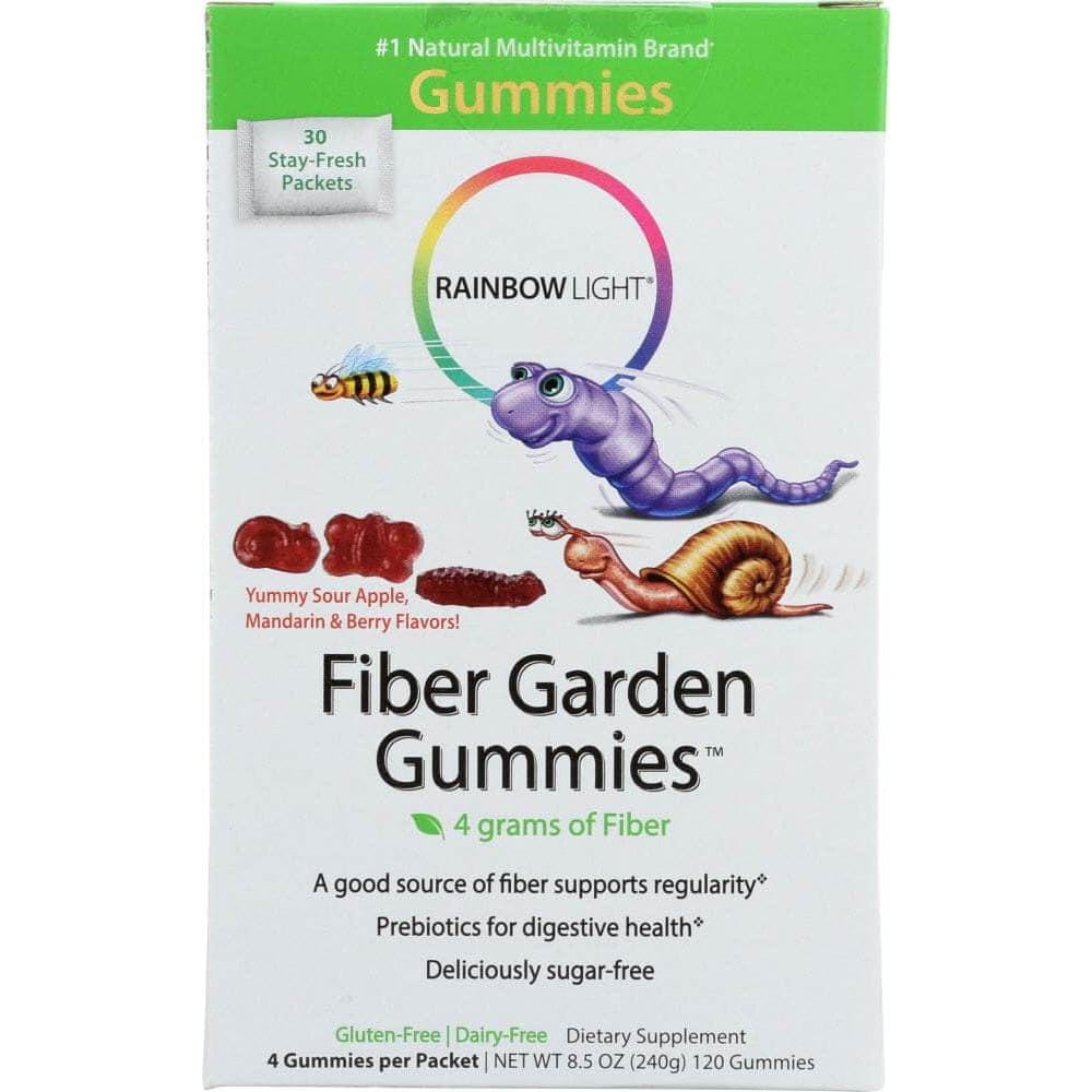 2 Servings of Fruits and VegetablesFiber Garden Gummies™ delivers the fiber and antioxidant support every child needs. Each packet contains the ORAC (antioxidant) value that is equal to 2 servings of fruits and veggies! Even picky eaters will love the sour berry, apple and mandarin orange gummies filled with a proprietary Hi-ORAC Fruit blend that includes potent antioxidant fruits like blueberry, grape, cranberry and cherry. Nutrient dense green foods such as broccoli sprouts, spinach, and kale are included in the proprietary Hi-ORAC Vegetable Blend.Fiber Rich SupportFiber is important to support your child’s regularity, keep their digestive tract active and healthy, as well as build their immune resistance. Rainbow Lights Fiber Garden Gummies™ provides 4 g of fiber to help keep them fuller longer and support digestion.*Digestion and Oral HealthFiber Garden Gummies™ are made with NutraFlora (FOS), a prebiotic fiber that strengthens immune health and digestion, and supports healthy blood sugar levels. Sugar- and gluten-free gummies also contain xylitol to promote oral health and may reduce the risk of dental caries.*Purity Guarantee Gluten-Free, Lactose-Free and 100% NaturalFiber Garden Gummies™ are gluten-free, lactose-free, dairy-free, yeast-free and nut-free. They are 100% natural, containing no artificial colors, flavors, sweeteners, preservatives or additives.Convenient Single-Serve PacketsFiber Garden Gummies™ come in individual stay-fresh packets -- four gummies to a packet. The single-serve packets preserve freshness and purity. Perfect for everyday nutrition on the go!Recycled PackagingPackaged in box made from 100% recycled paperboard.Product Highlights:Each packet contains the ORAC (antioxidant) value that is equal to 2 servings of fruits and veggiesHi-ORAC Vegetable Blend delivers 4 g of fiberDigestion enhanced with NutraFlora*Contains xylitol for oral health support*Gluten-free, lactose-free, dairy-free, yeast-free and nut-freeContains no hydrogenated oils100% Natural -- Free of artificial colors, flavors, sweeteners, preservatives and additives*These statements have not been evaluated by the Food and Drug Administration.This product is not intended to diagnose, treat, cure or prevent any disease.