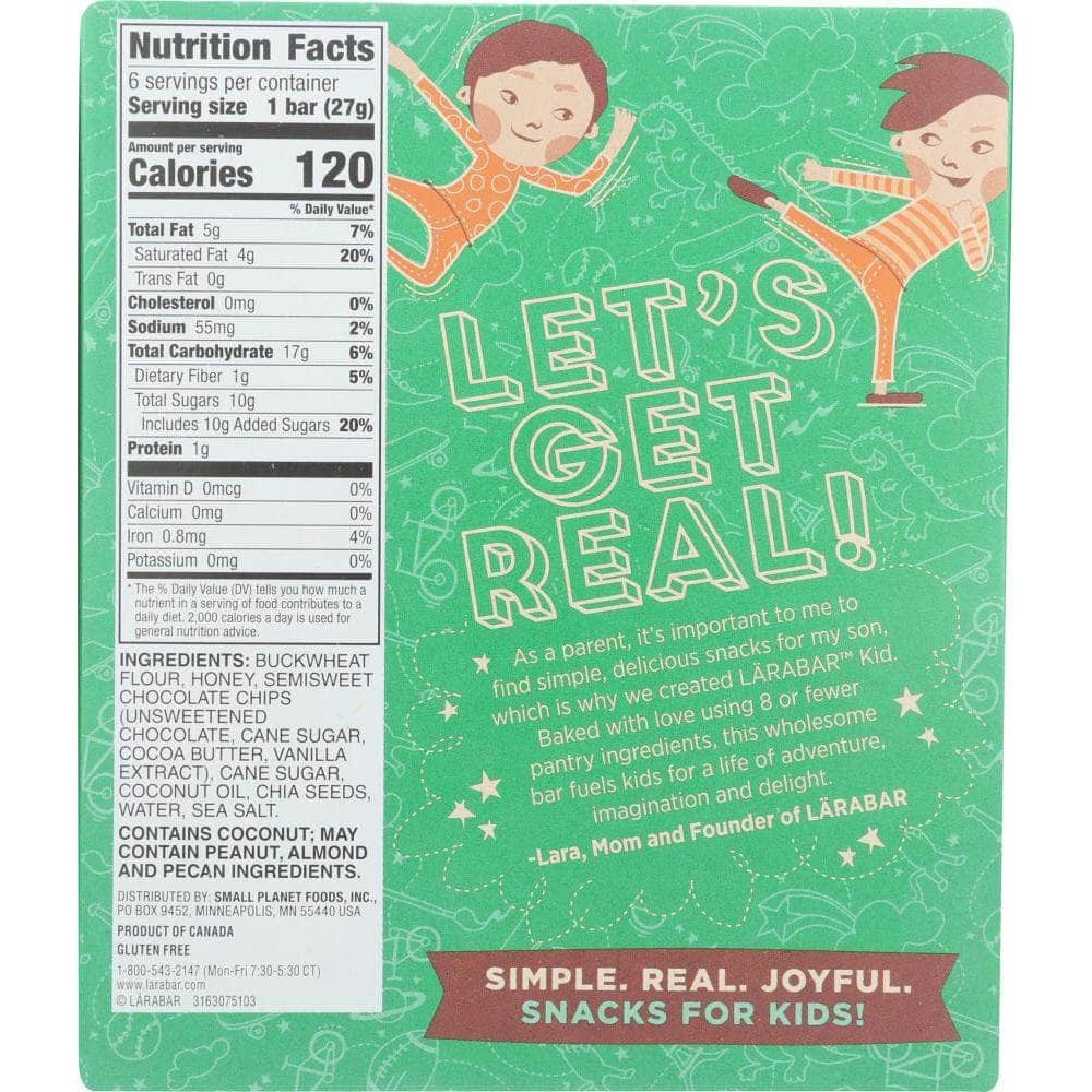 LARABAR KID is baked with love using 9 or fewer pantry ingredients. This wholesome bar fuels kids for a lifetime of adventure, imagination, and delight.