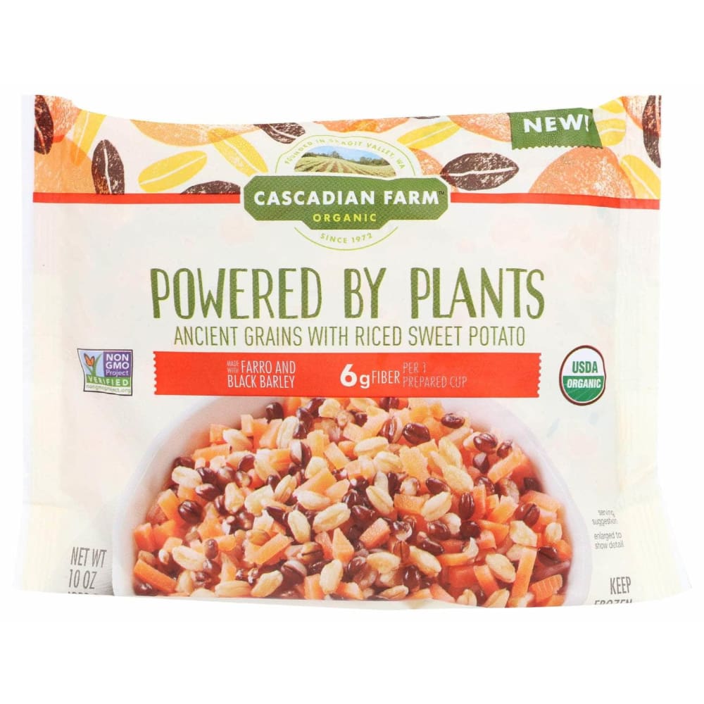 Ancient Grains with Riced Sweet Potato, OrganicMade with farro and black barley. 6 g fiber per 1 prepared cup. USDA Organic Certified Organic by Oregon Tilth. Non GMO Project Verified. nongmoproject.org. New! Founded in Skagit Valley, WA. Since 1972. Powered by plants. What are ancient grains? Ancient grains are a group of grains that have remained largely unchanged over the last several hundred years or more. Black barley and farro have a nutty flavor and firm, chewy texture.