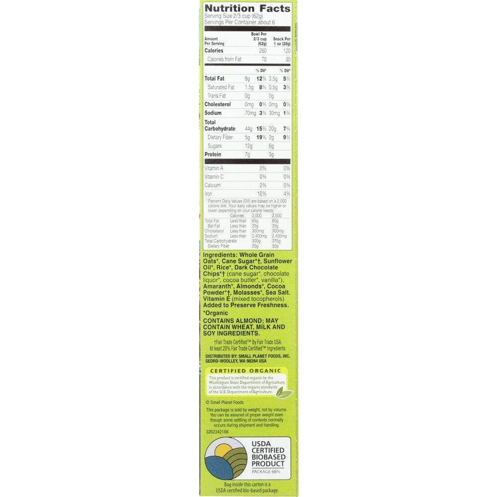 Indulge your taste buds throughout the day with the delicious blend of organic whole grain oats, dark chocolate and almonds. Perfect for breakfast, an afternoon snack or on top of your evening ice cream!