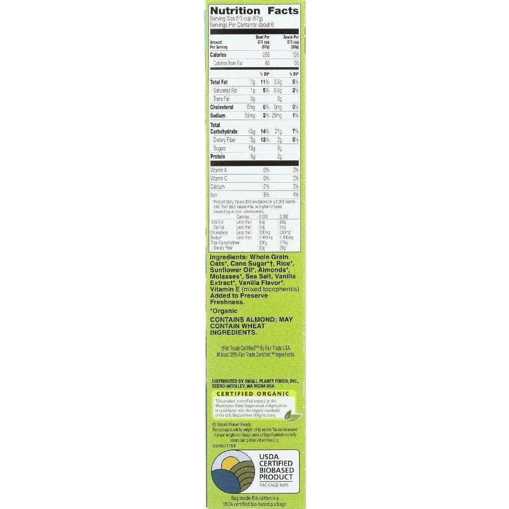 A delicious blend of organic whole grain oats, crisp rice, and sliced almonds with organic vanilla flavor.