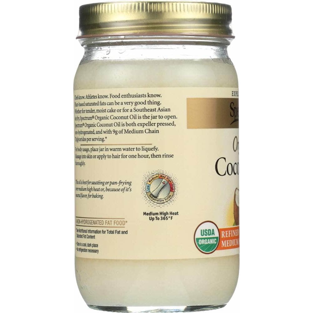 Spectrum brand Organic Refined Coconut Oil works best for sauteing or baking at medium-high heat, or for adding a creamy texture to smoothies. Provides Medium Chain Triglycerides (MCTs). Spectrum Refined Organic Coconut Oil also makes a gentle and effective all-over body moisturizer and deep conditioner for hair.