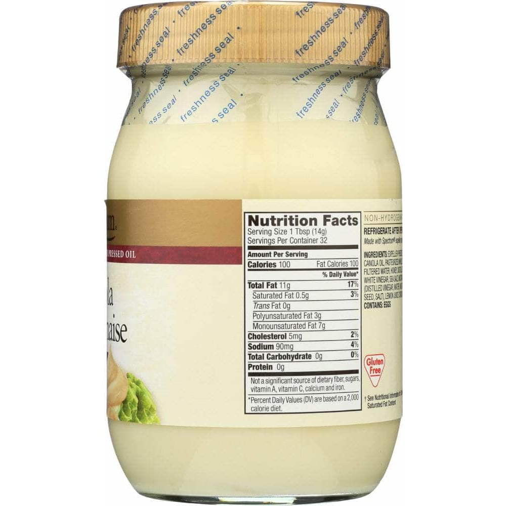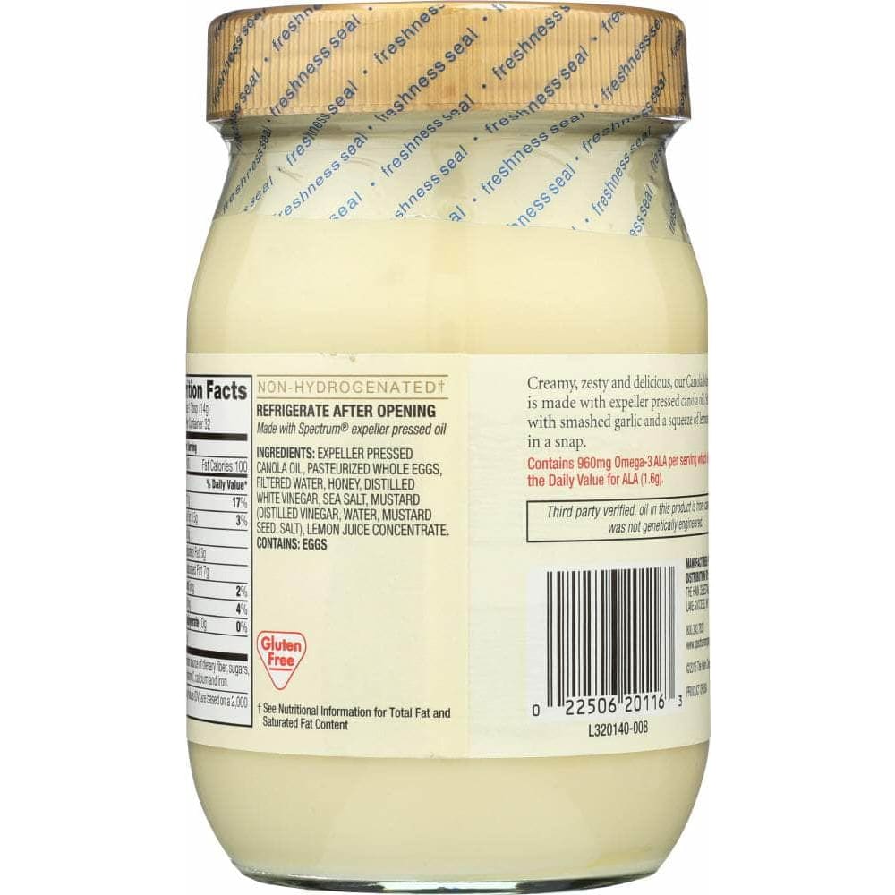Spectrum® Canola Mayonnaise is low in cholesterol and provides good-for-you monounsaturated fats. This creamy, zesty mayonnaise is the start of something delicious. Try it as a dip with pommes frites for a decadent delight or spread it on a veggie hero.