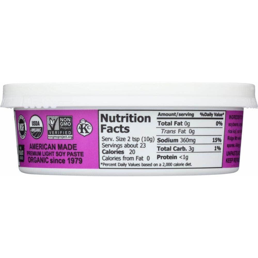 Miso Master Organic Mellow White Miso is one of our Short-Term miso varieties. These misos have their own unique position in the miso universe; in many ways this position is the mirror opposite of the Long-Term Aged Misos. Short-Term Aged or Mellow Misos have more rice or barley koji (grain innoculated with aspergillus spores) than soybeans in their ingredient mix because they are designed to ferment quickly as the aspergillus mold moves quickly through the abundant starches in rice or barley transforming them into simple sugars. Short-Term miso also have much less salt in their ingredient mix, thereby retarding the fermentation process much less than in the Long-Term Aged Misos.