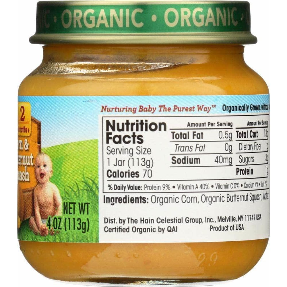 Earth's Best Organic® Baby Food, Corn & Butternut Squash provides your little one with wholesome nutrition. Produced with non-GMO ingredients this product is vegan and kosher.