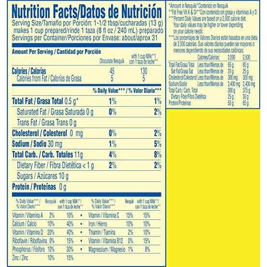 ESQUIK Chocolate Powder turns milk into an irresistibly delicious and nutritious drink for your family to enjoy and for you to feel good about, with 45% less sugar than the leading syrup brand. NESQUIK Chocolate Powder provides calcium, 8 grams of protein, and 7 essential vitamins and minerals when combined with low-fat milk to help them start the day.