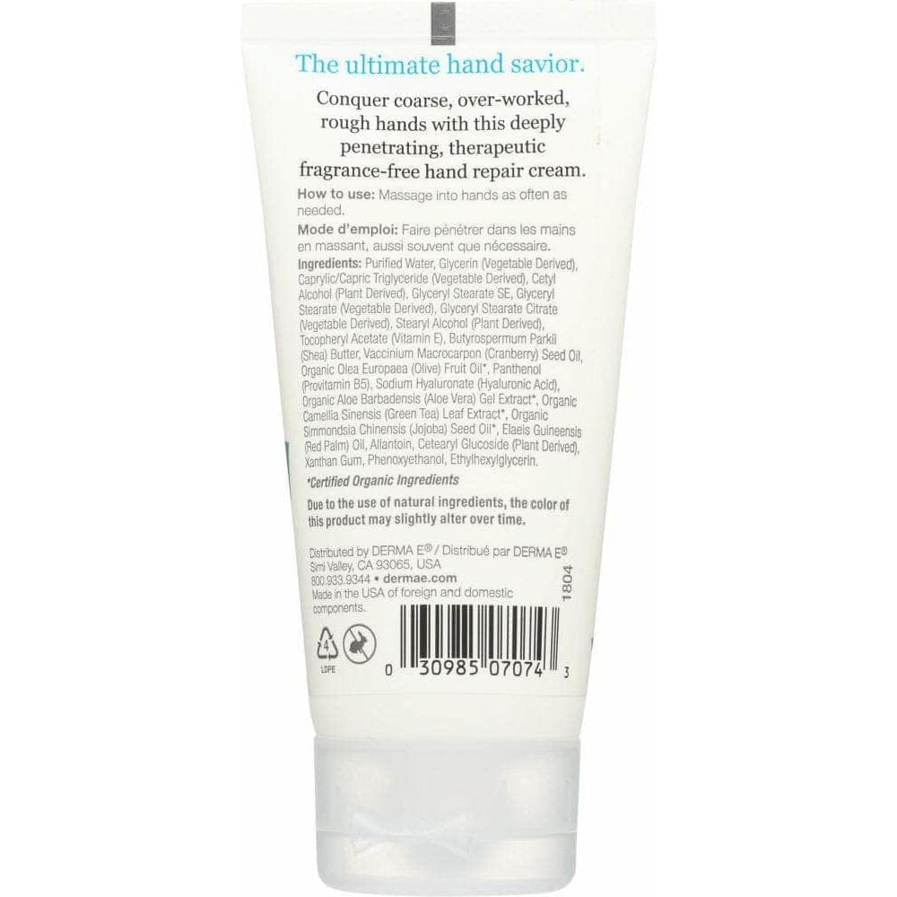 Derma E Vitamin E Hand Cream Fragrance Free, 2 oz (Case of 3)
