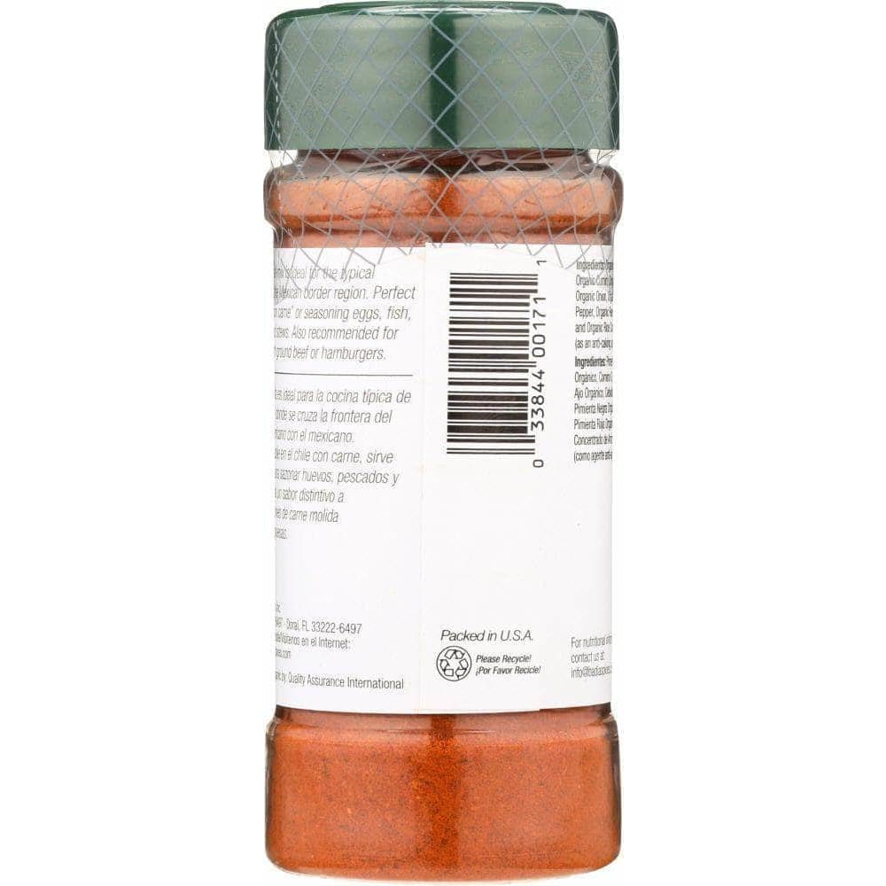 Badia Organic Chili Powder has bright bold flavor with earthy undertones tasting notes.This original mix is ideal for the typical cuisine of the Mexican border region. Perfect for "chili con came" or seasoning eggs, fish, gravies and stews. Also recommended for mixing with ground beef or hamburgers.