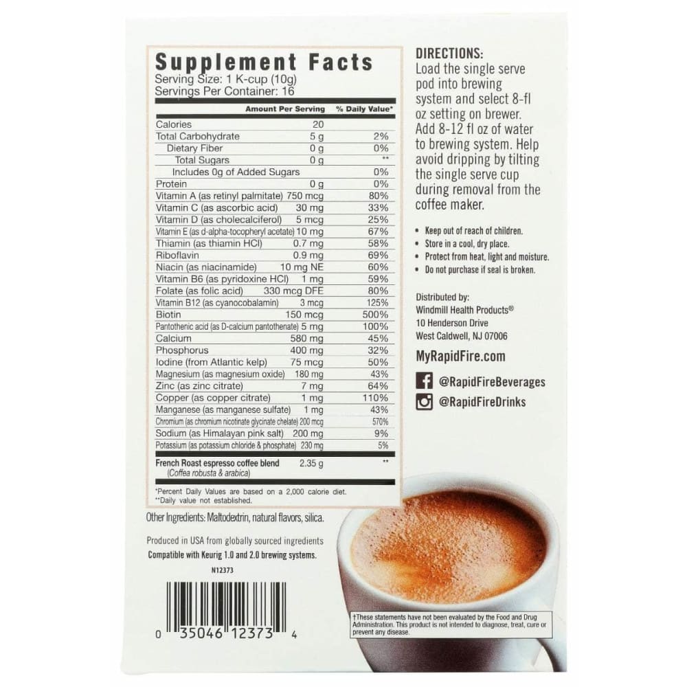 Start your morning right with Rapid Fire Vita-Brew. This vitamin and mineral fortified coffee promotes enhanced energy and focus, while supporting a balanced diet. Rapid fire Vita-Brew provides a powerhouse blended vitamin infusion of vitamins A, C, E, B6, B12, plus zinc, copper, chromium and more, making it easier to get your nutrients to fuel your body throughout the day. Enjoy a smooth, rich and full bodied cup of french roast coffee every time, which includes 22 vitamins and minerals, providing immune support and increasing vitality.