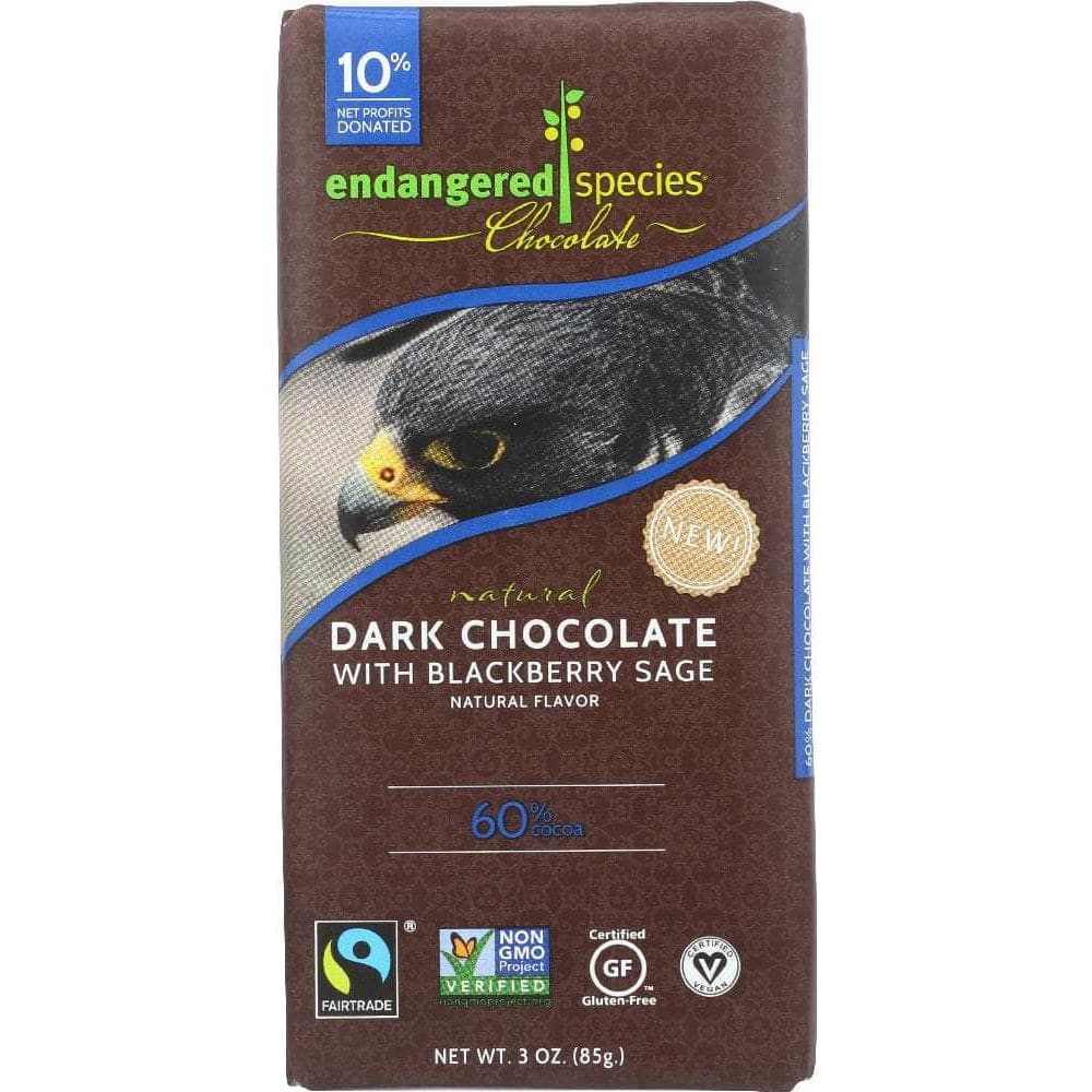 Endangered Species Chocolate Natural 60% Dark Chocolate Bar Blackberry Sage, 3 Oz (Case of 4)