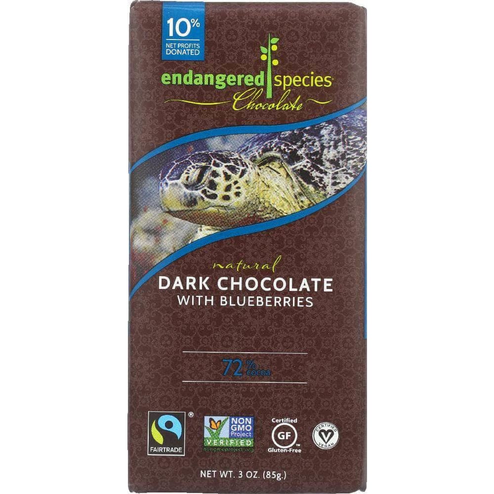 Endaspeciesngered Natural Dark Chocolate Bar with Blueberries, 3 Oz (Case of 4)