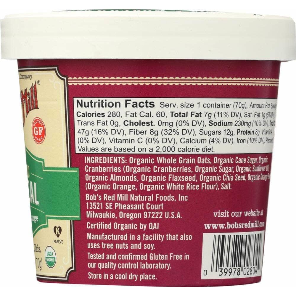 Bobs Red Mill Organic Oatmeal Cup Cranberry Orange, 2.47 oz (Case of 5)