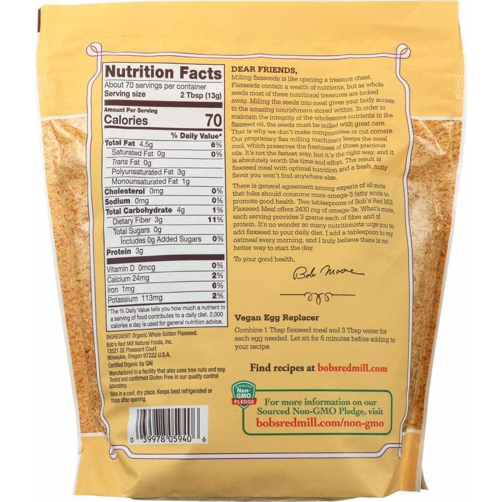 Bobs Red Mill Organic Golden Flaxseed Meal, 32 oz (Case of 2)