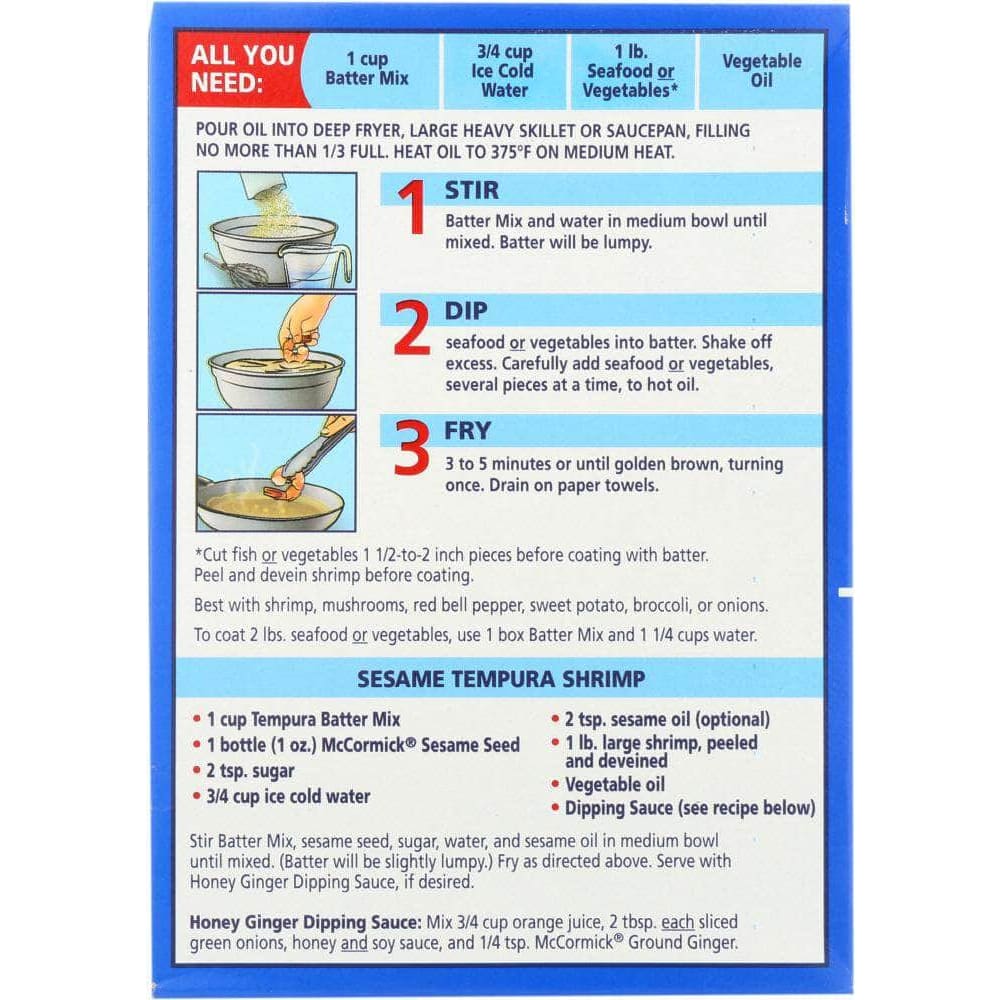 Fry your seafood and vegetables just like your favorite Japanese tempura bar! McCormick® Tempura Seafood Batter Mix is a specially blended recipe of the finest ingredients, so you can make authentic Japanese tempura, right at home, quickly and easily.