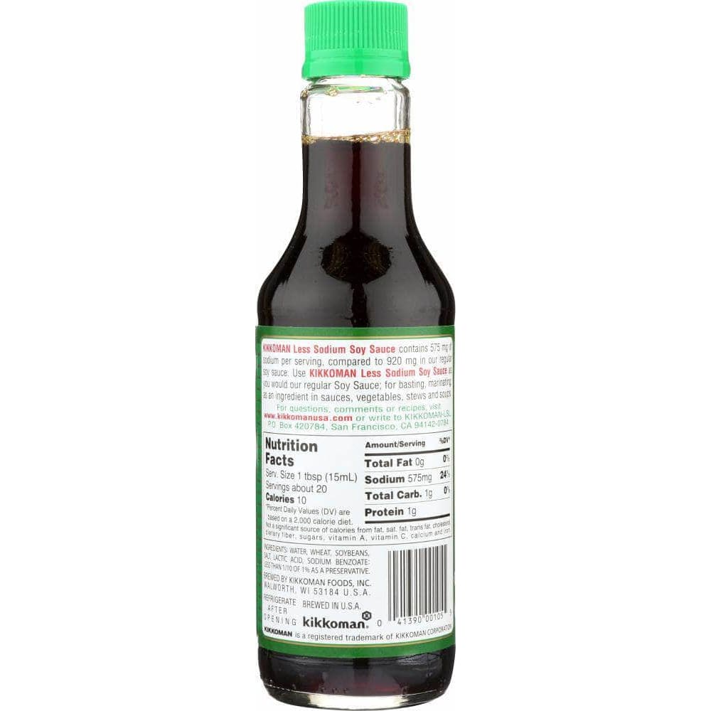 Kikkoman Less Sodium Soy Sauce is brewed exactly the same way as all-purpose Kikkoman Soy Sauce. However, after the fermentation process is completed, approximately 40% of the salt is removed. Although there is less sodium in Less Sodium Soy Sauce, all the flavor and quality characteristics remain because it is aged before extracting the salt. However, to maintain this full flavor, we recommend using it during the latter stage of cooking in braising sauces, soups and stews, vegetables or stir-frys.