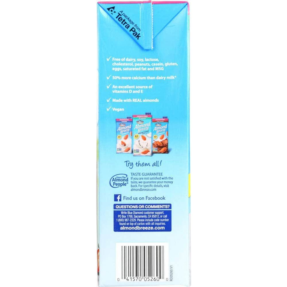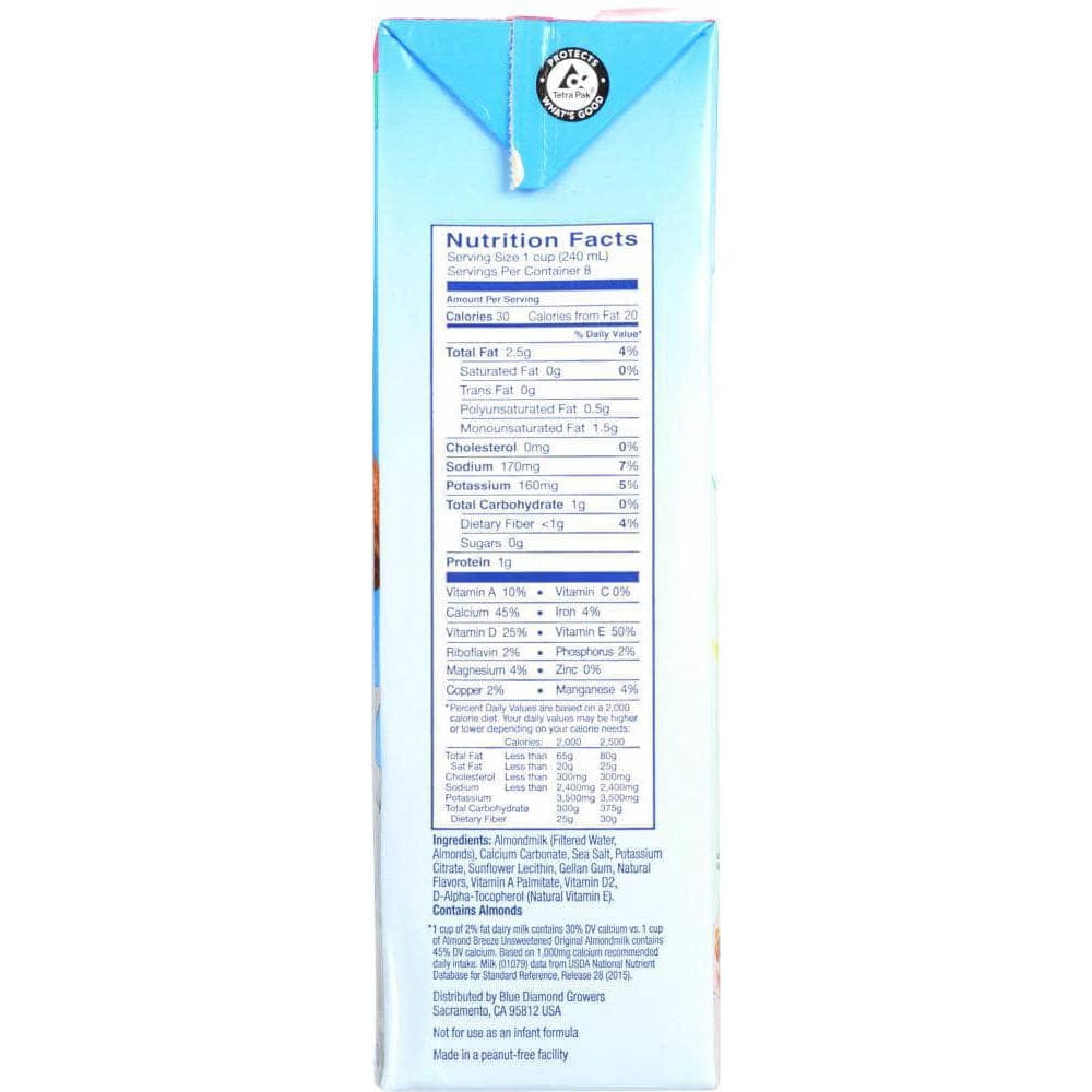 Blue Diamond Almond Breeze Almond Milk Original Unsweetened, 64 oz (Case of 3)