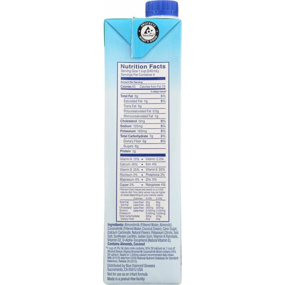 A blend of real almonds and coconuts, Almond Breeze Almondmilk Coconutmilk Original is a deliciously creamy alternative to dairy and soymilk with a touch of coconut. Almond Breeze Almondmilk Coconutmilk Original is lactose free, soy free, calcium enriched, and contains only 60 calories per glass.