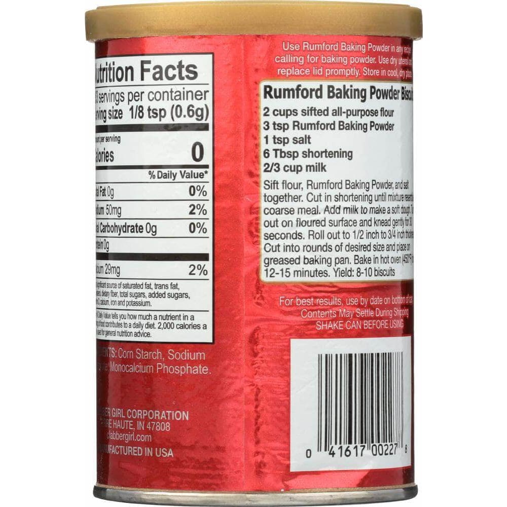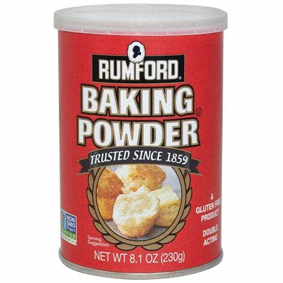 Rumford Baking Powder 8.1 oz can. Rumford Non-GMO, Gluten-Free, Double Acting Baking Powder is a great leavening agent used in all types of delicious baked good recipes. Consistent results in a double-acting formula with 30% CO2 release at batter temperature.