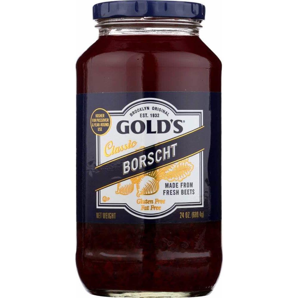 Borscht soup is a beloved staple in Russian and Eastern European households, and a favorite in our kitchen! Gold’s Borscht is light with the distinctive earthy taste of fresh beets. Top with a dollop of sour cream and enjoy this sweet, hearty soup with beef, potatoes, eggs, or your favorite vegetarian dish! All of our borscht varieties are Kosher for Passover as certified by The Orthodox Union.