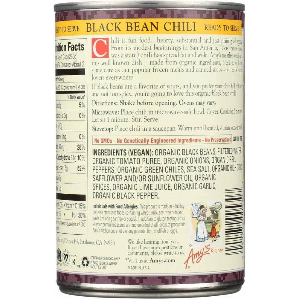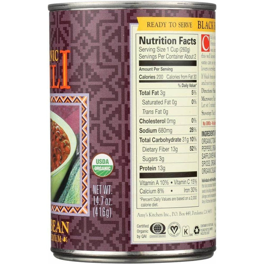 Amy's Organic Chili Black Bean Low Fat Medium, 14.7 Oz (Case of 3)