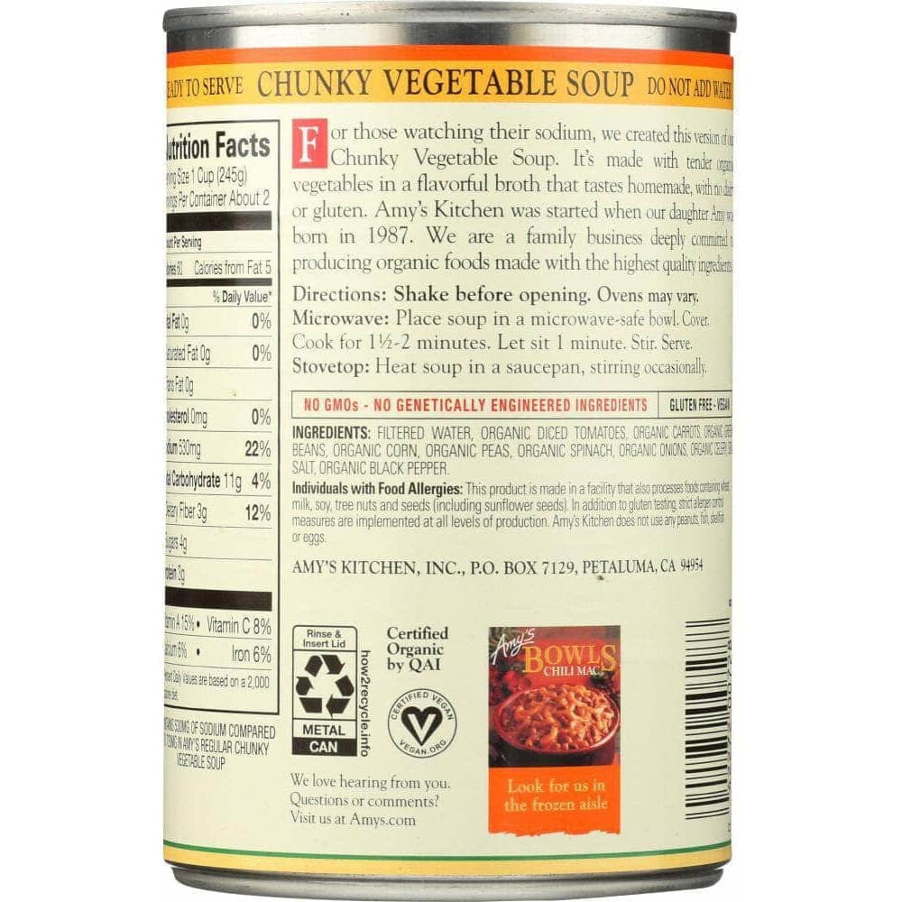 Amys Soup Vegetable Chunky Light Sodium, 14 oz (Case of 4)