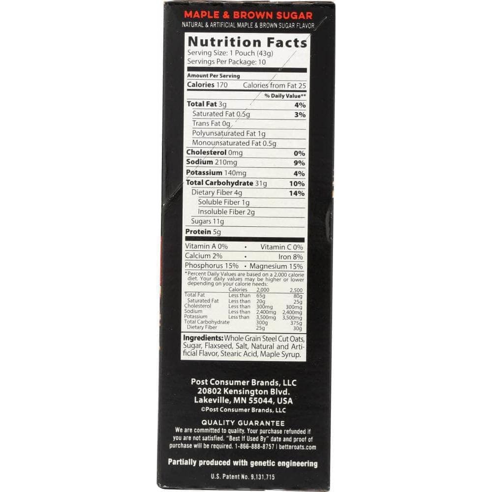 Steel cut oats sweetened with the rich flavors of maple and brown sugar.