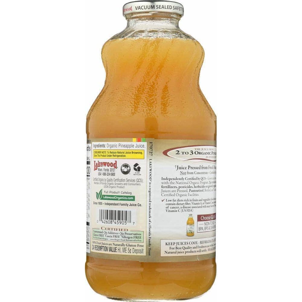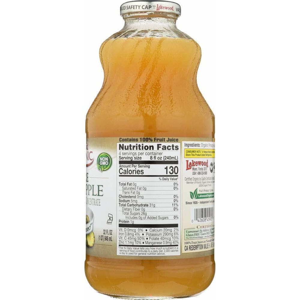 Lakewood Organic 100% Pure Pineapple Juice, 32 oz (Case of 2)
