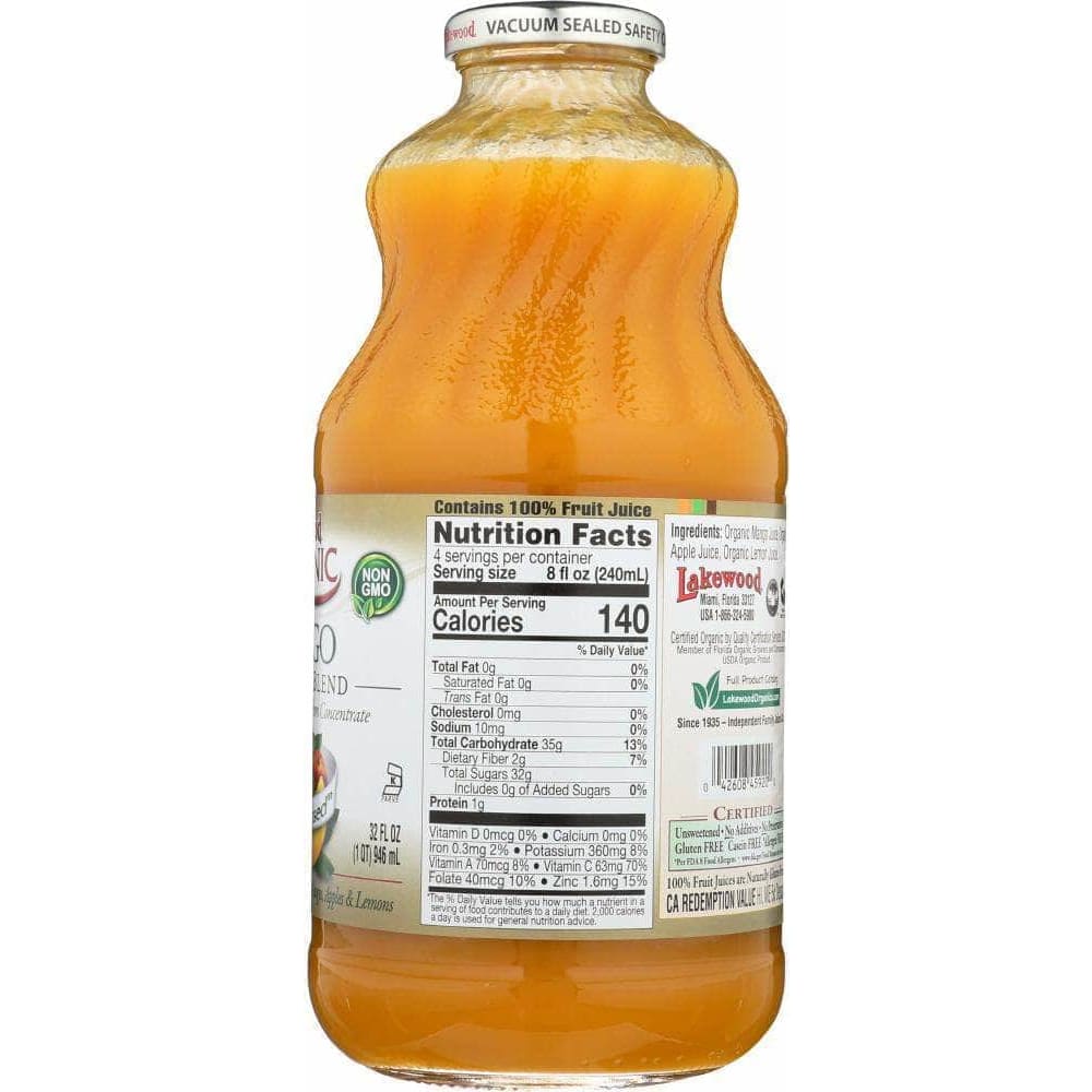 Lakewood Organic Mango 100% Juice Blend, 32 oz (Case of 3)
