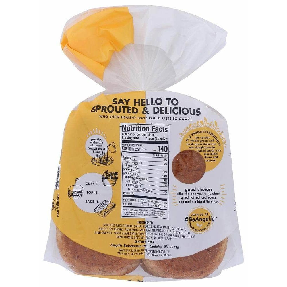 Angelic Bakehouse Seven Sprouted Whole Grains Burger Buns, 16 oz (Case of 4)