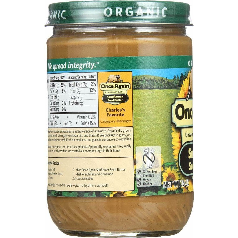 Once Again Organic Sunflower Seed Butter Unsweetened & Salt Free, 16 oz (Case of 2)