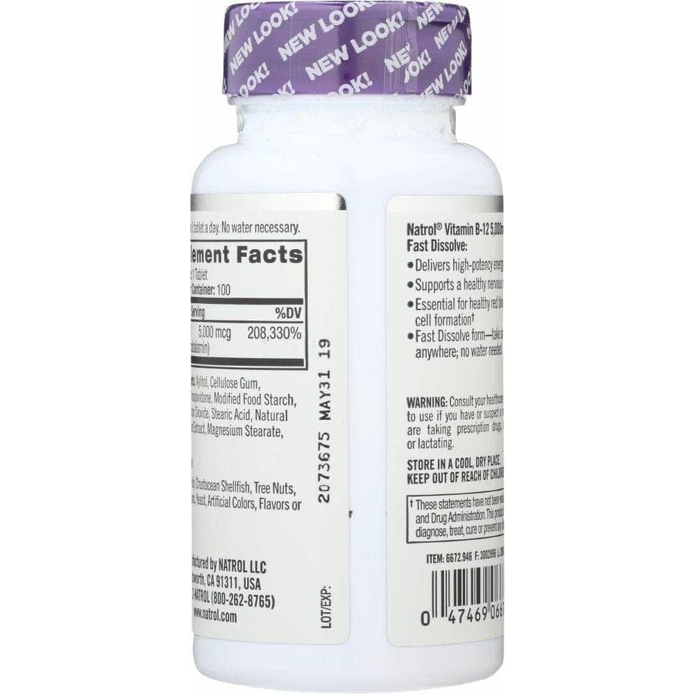 Natrolยฎ Vitamin B-12 5000mcg Fast Dissolve delivers high-potency B-12 to boost natural energy levels and support the nervous system. Fast-dissolve is a delivery method that allows vitamin B-12 to quickly dissolve in your mouth and can be swallowed without liquids.