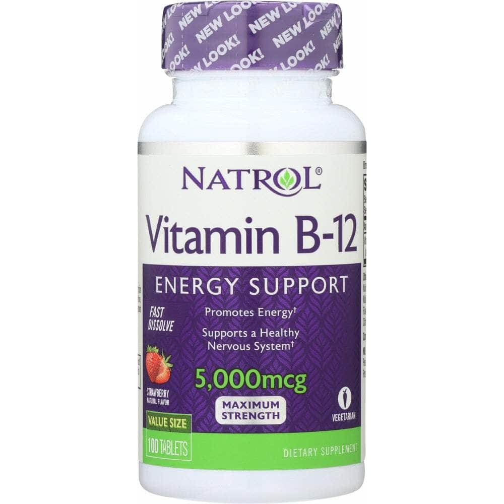 Natrol Vitamin B-12 Fast Dissolve Strawberry 5000 Mcg, 100 tablets (Case of 2)