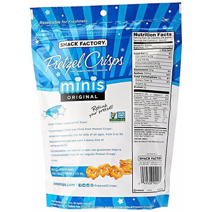 Snack Factory Pretzel Crisp Mini Original, 6.2 oz (Case of 4)