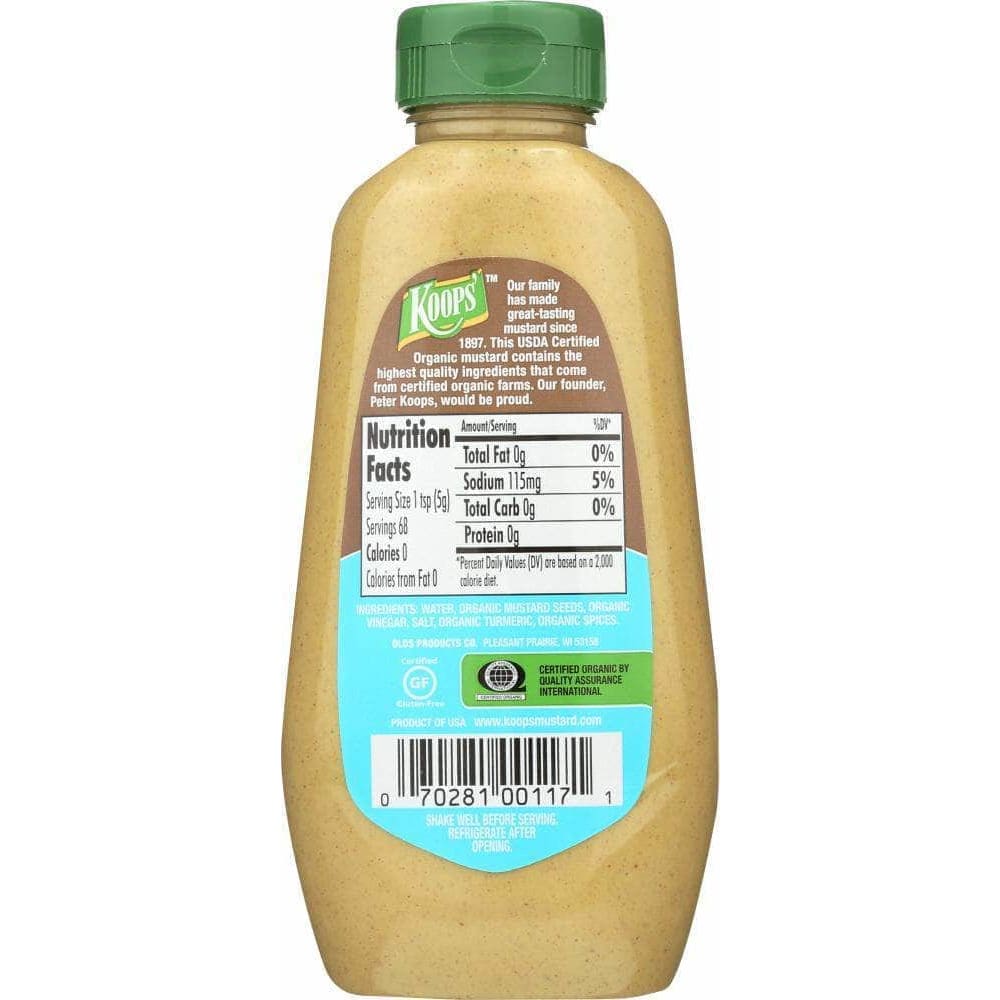 Sharp, flavorful & velvety smooth. Gluten free. USDA organic. Naturally. That's how our family has always made great-tasting mustard since 1897. This USDA certified organic mustard contains the highest quality seed. Ingredients come from certified organic farms that are pesticide, herbicide and chemical-free. Our founder, Peter Koops, would be proud! Certified gluten-free. Certified organic by Quality Assurance International. www.koopsmustard.com. Product of USA.