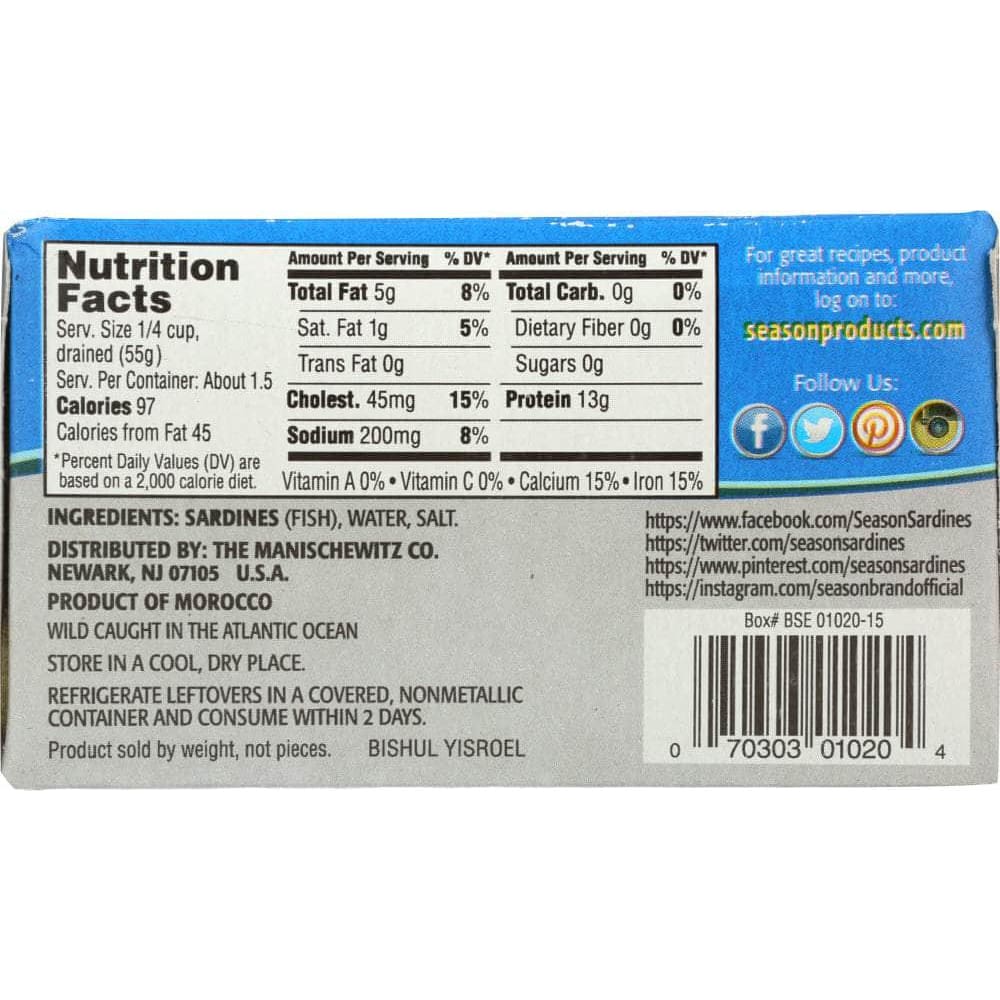 Seasons Sardines in Water Salt Added, 4.375 oz (Case of 5)