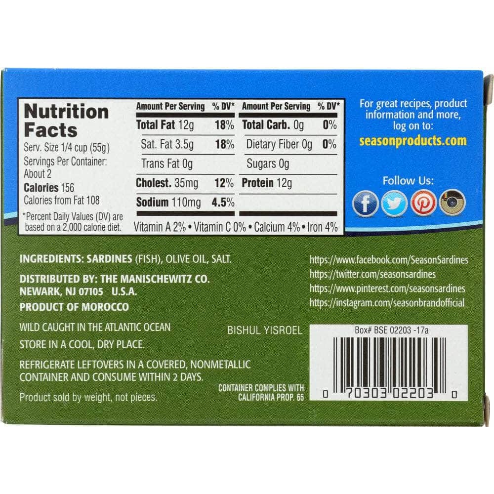 Season Brand Skinless and Boneless Imported Sardines in Pure Olive Oil, 3.75 Oz (Case of 4)