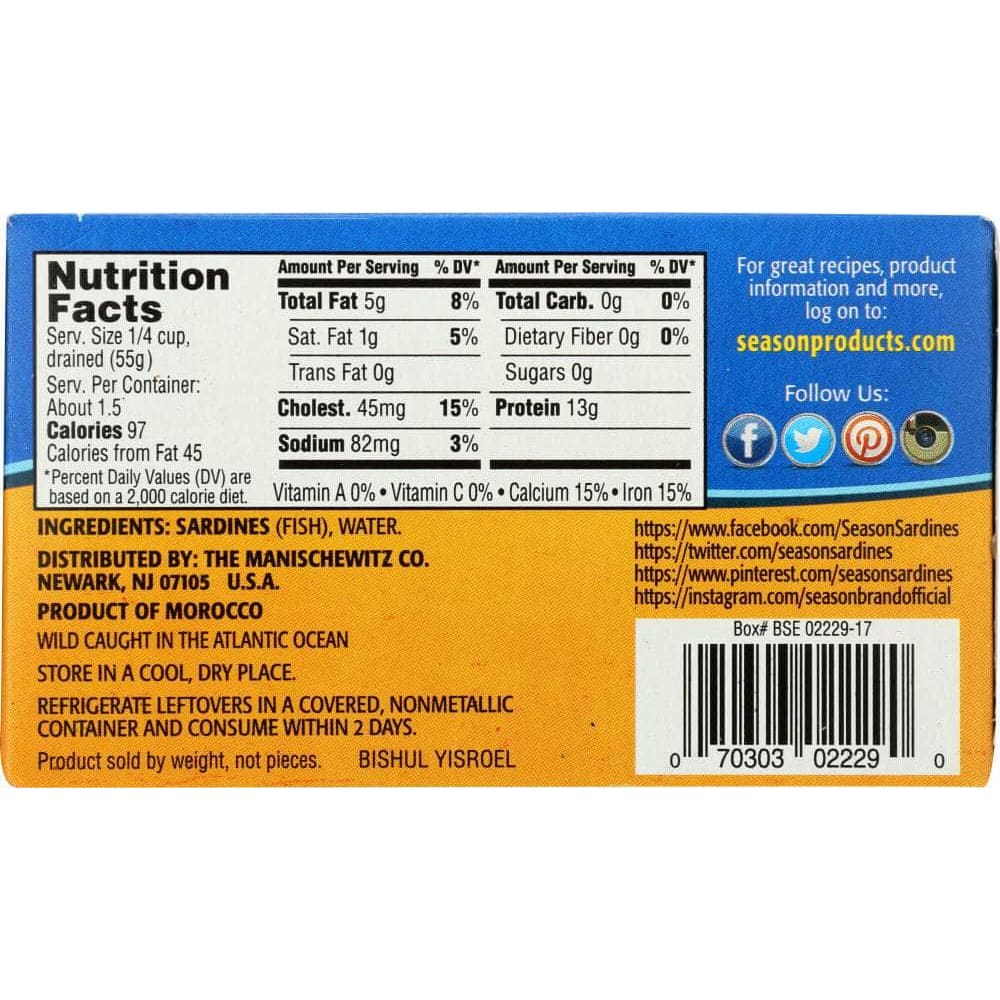 Seasons Sardines in Water No Salt Added, 4.375 oz (Case of 5)