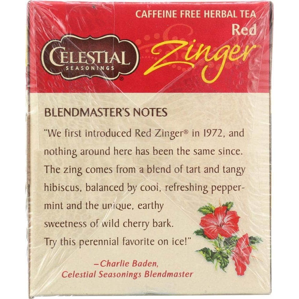 First offered in 1972, the original Zinger® tea blends tangy and fruity hibiscus leaves with refreshing peppermint, sweet orange, lively lemongrass and earthy wild cherry bark. One of our favorites over ice.